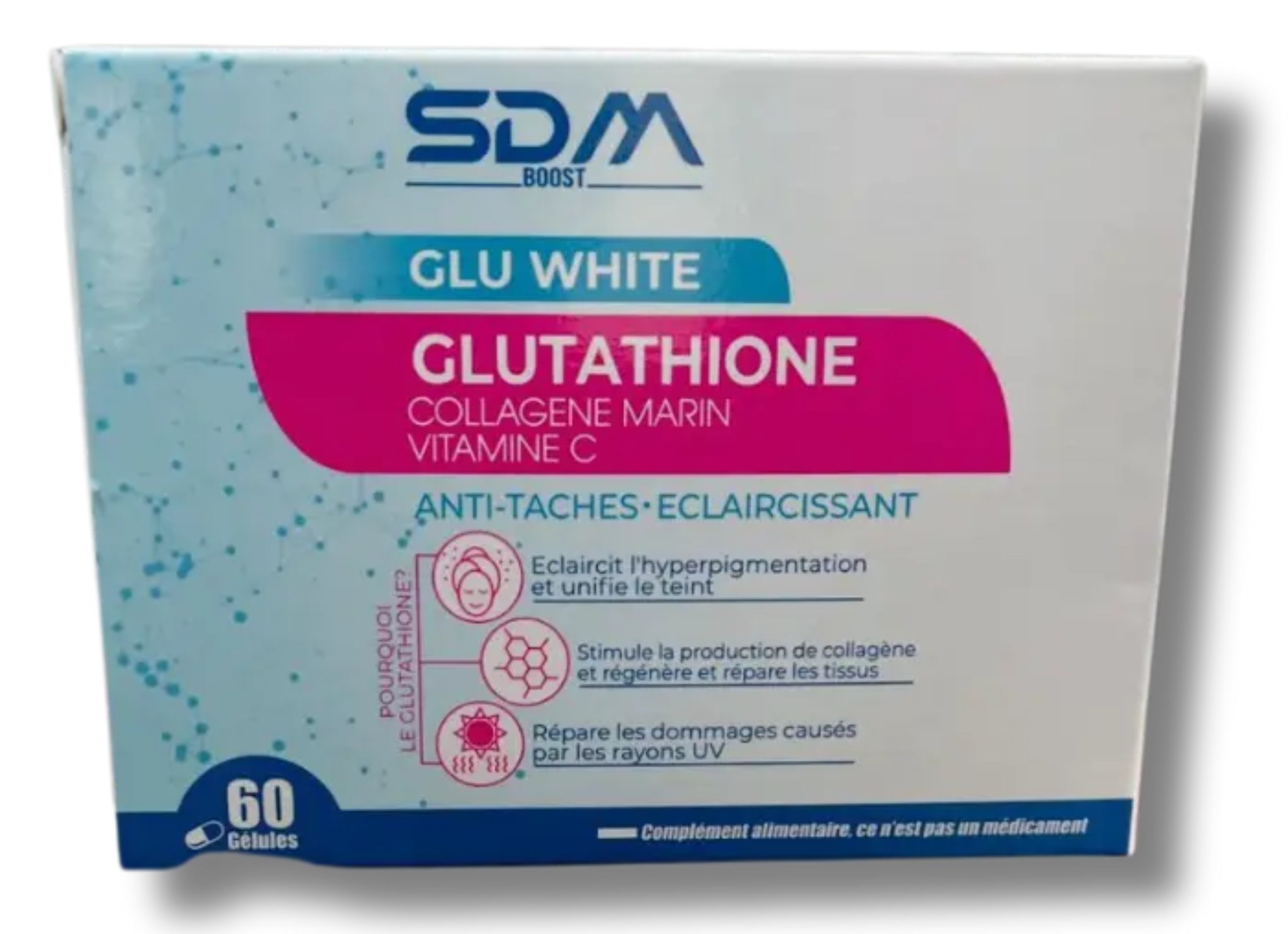 Découvrez le produit SDM Glu white glutathione 60 gelules sur notre boutique en ligne sur paramania.ma